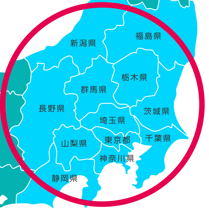 群馬、栃木、山梨、静岡、長野、新潟、福島のエリアも完全カバー!