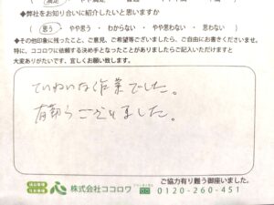 「ていねいな作業でした。有難うございました。」