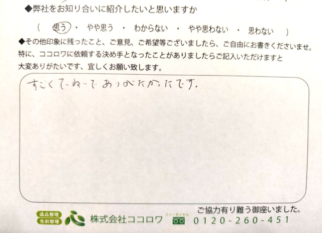 「すごく丁寧で有難かったです。」