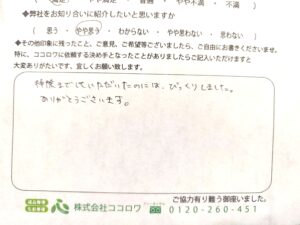 この度はココロワにご依頼いただき誠にありがとうございました。